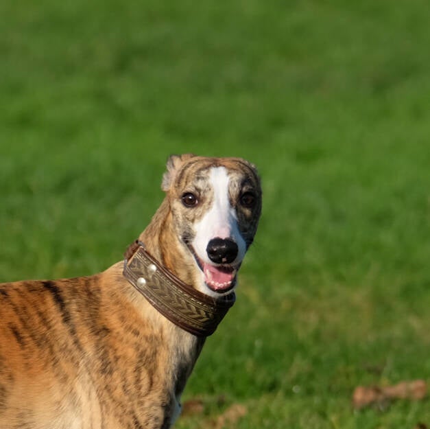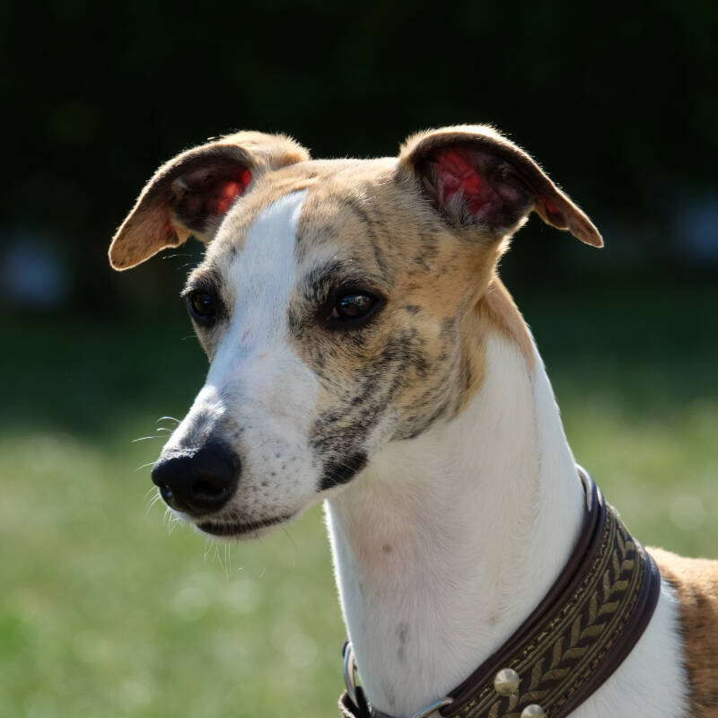 Boyfriend is een bloedmooie, particolour Whippet met een zacht temperament. Boyfriend loves his food, gaat steeds op zoek naar lekkere hapjes en maakt zich niet moe als het niet echt nodig is. Rollen in stinkiewinkies is altijd meegenomen en hij laat geen enkele kans daartoe verloren gaan.